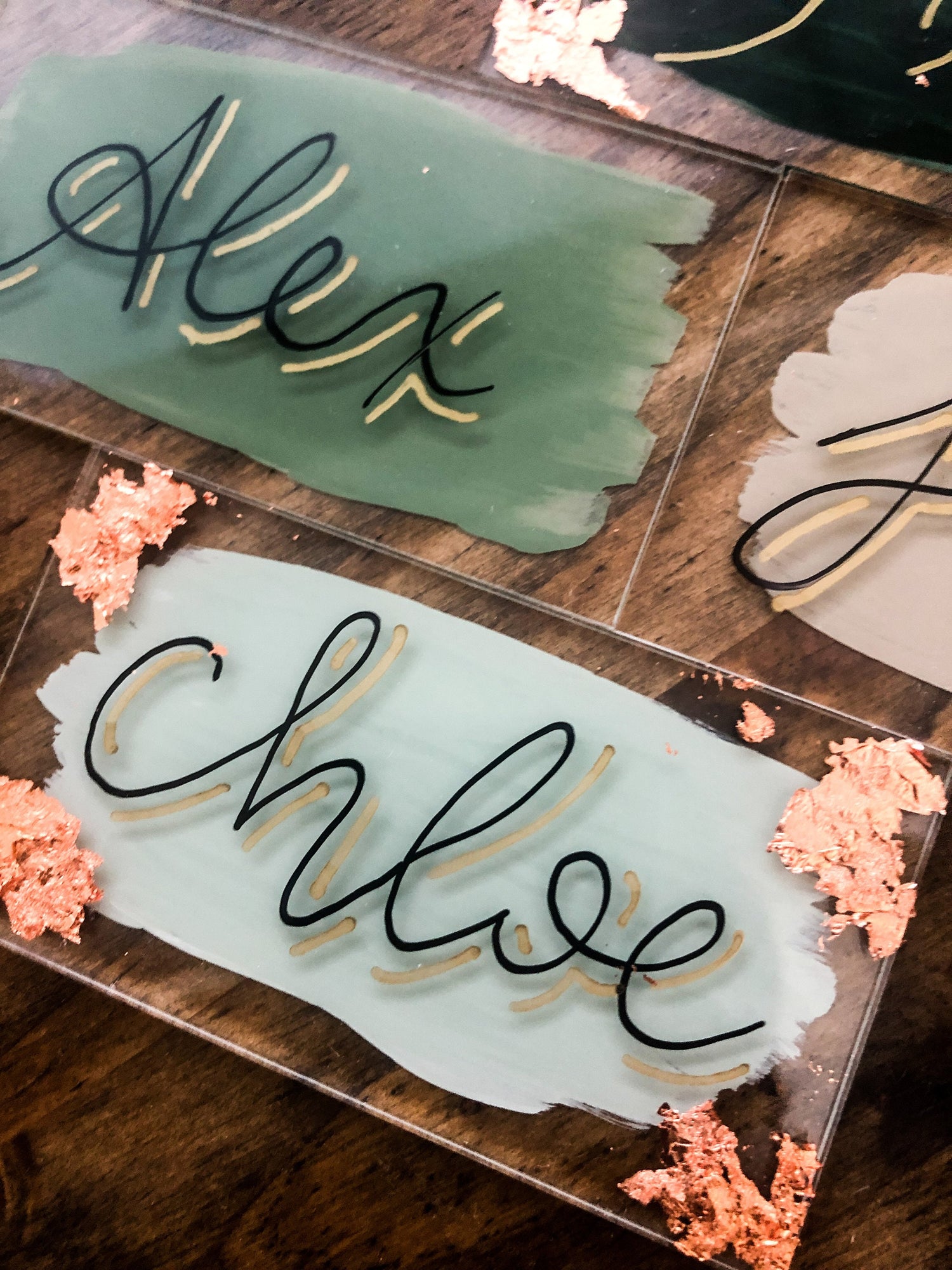 Please email first names to alexgrecolettering@gmail.com with your order number and lettering color. In the case that several guests have the same name, last name initial can be added.