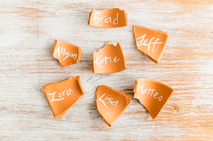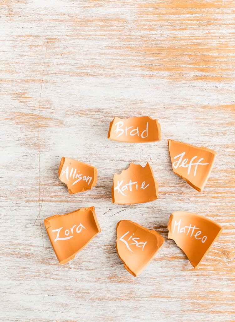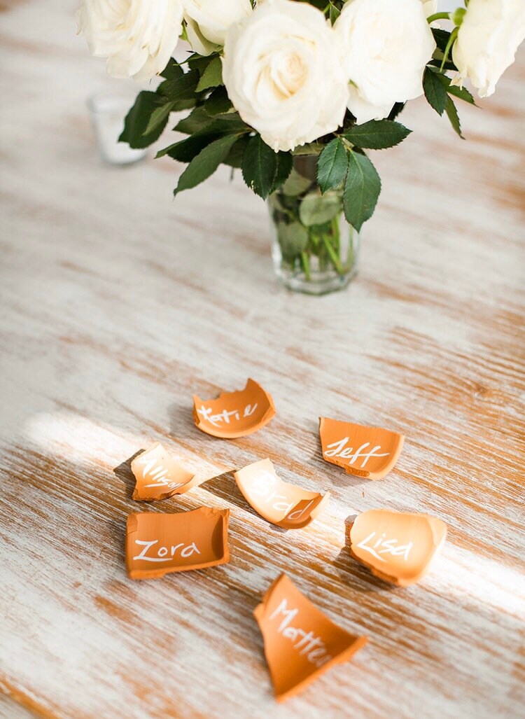 These terra-cotta place cards are a creative way to display your guests’ names. Perfect for rustic, outdoor or sustainable weddings and events!